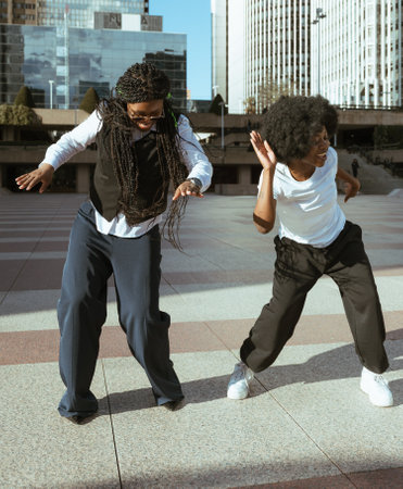 Afro friends enjoying a dance session outdoors in the city