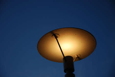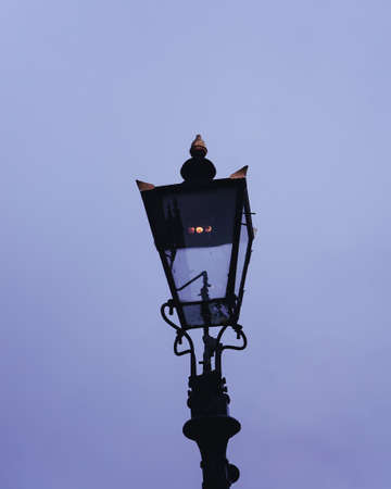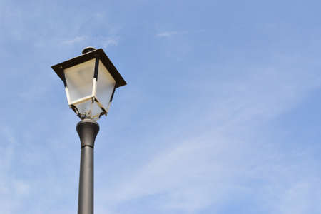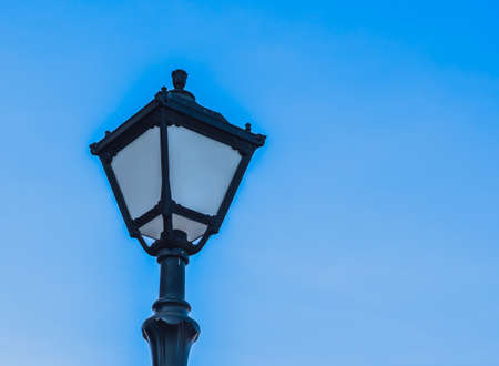 Street lamp against the background of the evening blue sky with clouds, place for text.