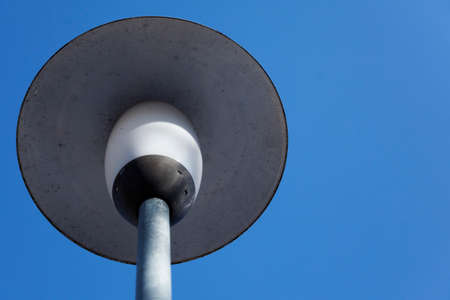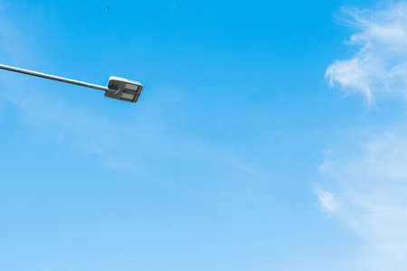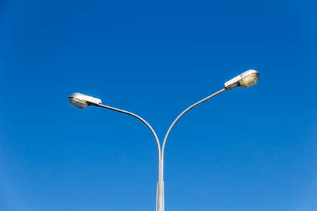 Street light against blue sky . City street lamp post . Urban electric illumination equipment