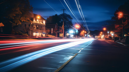 Bright lights in the city on the road, timelapse. AI generative. illustration in photorealistic style.