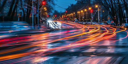 Night city traffic blurred cars long exposure lights evening highway lane movement fast transit car motion auto illuminated vehicle transportation street high speed light trails abstract background
