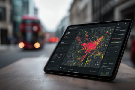Digital interface displays delivery heatmap of an urban area, highlighting zones of high activity and clear delivery patterns.