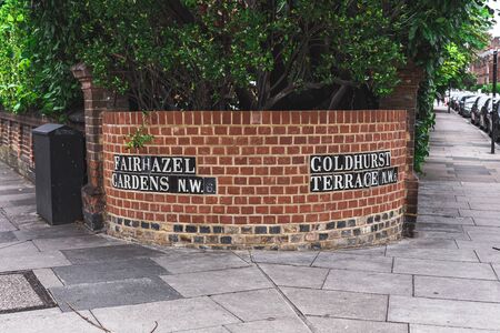 London, UK - July 30, 2018: West End Lane street sign, Hampstead, London Borough of Camden, UK