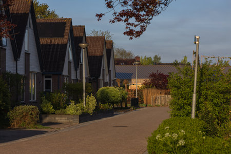 Modern terraced houses in a quiet residential area in Bedum. Typical Dutch architecture and clean streets in the morning sun.