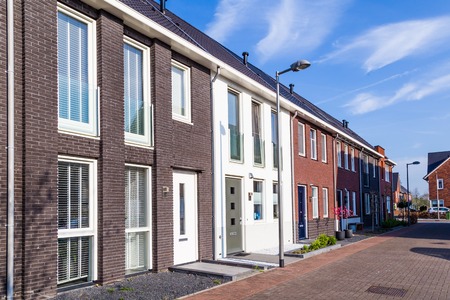 Row of modern brick houses in a family friendly suburban neighborhood in Veenendaal in the Netherlands.