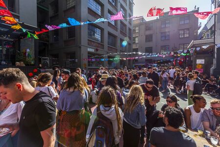 Wellington, New Zealand - November 02, 2019: People celebrate at Dia De Los Muertos Street Fiesta, a free annual street festival celebrating life and past loved ones.