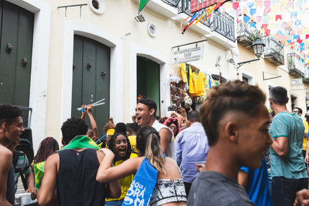 Salvador, Bahia, Brazil - June 22, 2018: Brazil fans celebrate the goal in the game between Brazil vs Costa Rica for the 2018 World Cup in Russia.