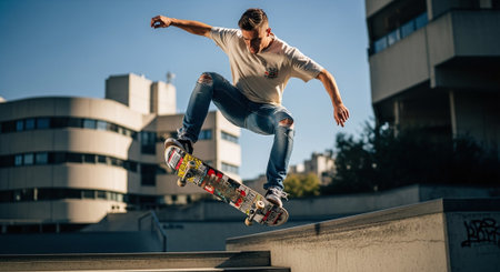 Skateboard Soar Embracing Joyful Momentum in Urban Style