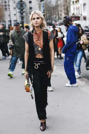 Paris, France - March 03, 2019: Street style appearance during Paris Fashion Week - PFWFW19