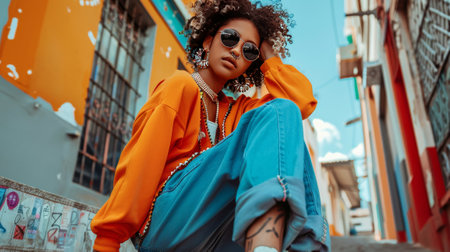 streetwear outfit with bold colors and patterns for a standout look, created with generative ai