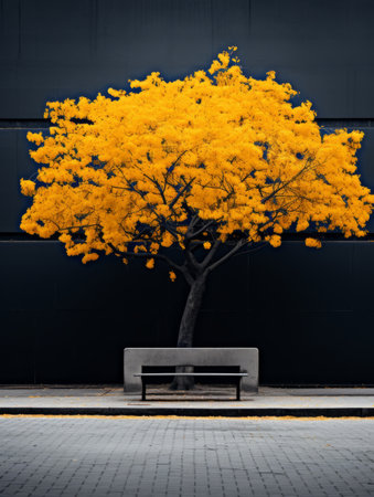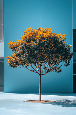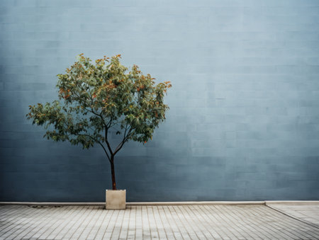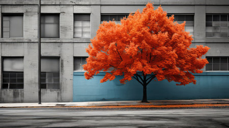 A vivid urban wall featuring a lone tree, showcasing a blend of colors and textures. Perfect for minimalistic design themes and nature-inspired projects.