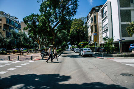 Tel Aviv Israel March 31, 2020 View of unidentified people walking in the empty streets of Tel Aviv during the quarantine of the population to prevent the spread of coronavirus