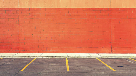 Vibrant orange and red wall alongside empty parking spaces in urban setting