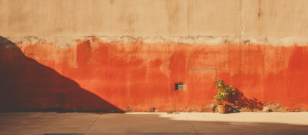Colorful wall with shadows, flowers, urban landscape art