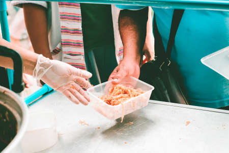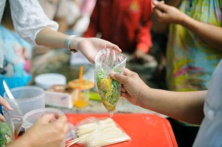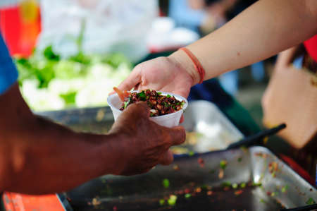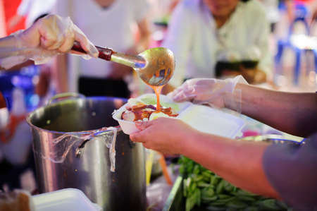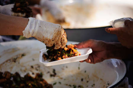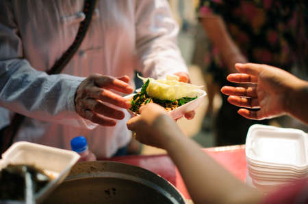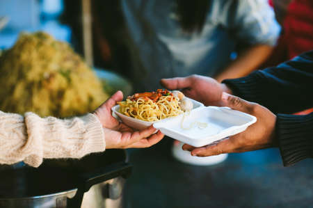 The hands of poor have been aided by charity food to alleviate hunger: The concept of social sharing