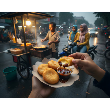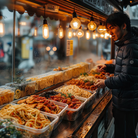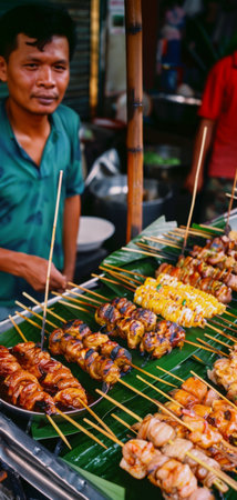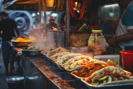 Street food for tourists, vibrant stalls offering diverse, delicious local flavors