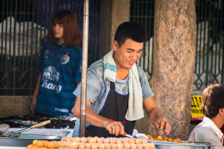 Bangkok, Thailand - January 3, 2016: Street food seller at Chatuchak market in Bangkok