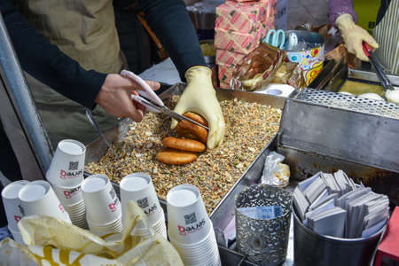 Busan city, South Korea-OCT 31, 2019: Korean street food, Seeds hotteok at BIFF Square in Busan.