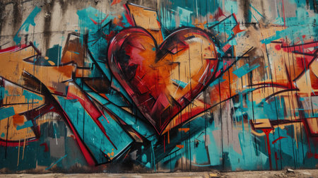 Colorful graffiti in the shape of a heart on a concrete wall