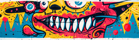 Colorful urban art featuring a monster face and script letters artistic backdrop. Concept Urban Art, Monster Face, Script Letters, Colorful Backdrop, Artistic Background