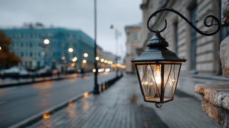 As twilight settles over the bustling city, a vintage lantern casts a warm, inviting glow.