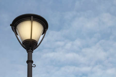 Street lamp against the background of the evening blue sky with clouds, place for text.