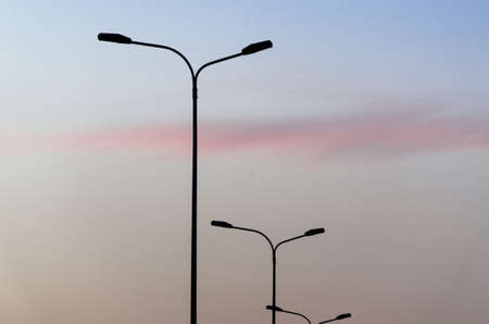 Street lamp silhouette on colorful dawn/dusk sky background.
