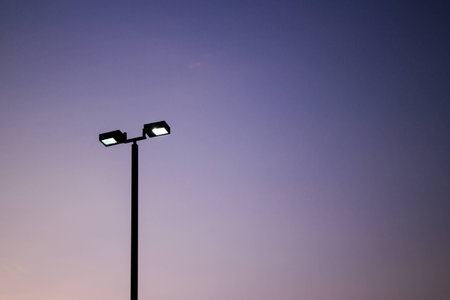 A streetlight shining brightly against a twilight sky, illuminating the city streets and providing a sense of security