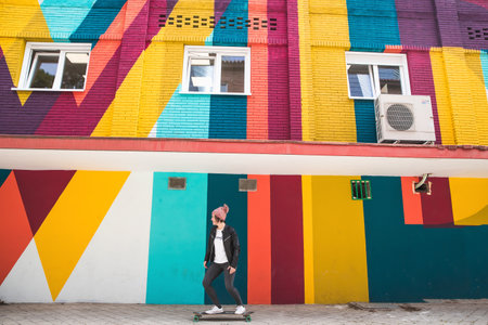 Colorful painted concrete wall texture in an urban landscape.