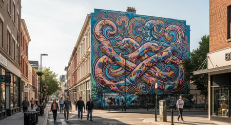 Colorful urban mural on city street wall