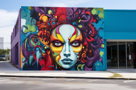 Vibrant street art portrait of a woman with bold colors and intricate details