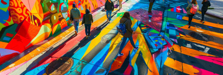 Once ordinary, a city street now dazzles with colorful street art and cheerful passersby the vibrant murals and happy faces make for a joyful, elevated everyday, banner