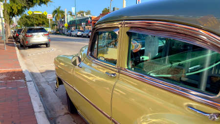 Havana, Cuba; Sep 26 2017: Retro car has truck tire in the trunk