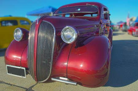 DOWNERS GROVE, UNITED STATES - Jun 07, 2019: A closeup shot of a shiny vintage car with a blurred background
