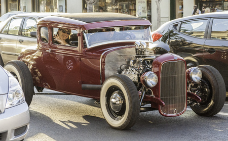 Ford roadster classic driving down Colorado Blvd in Pasadena