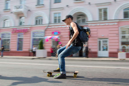 Belarus, the city of Gomel, September 15, 2018. Holiday City Day. Central Park The guy on a skateboard rides on a city street