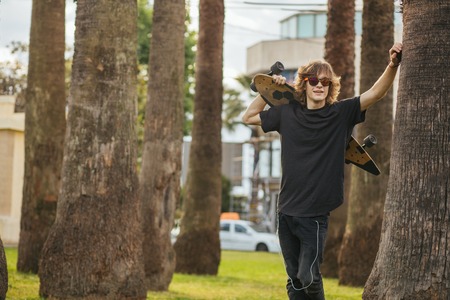 Skater boy on the street in Los angeles. Skateboarding in venice, California