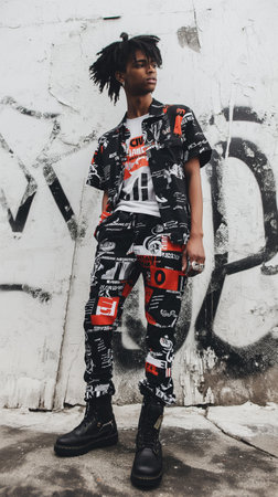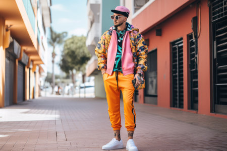 streetwear outfit with bold colors and patterns for a standout look, created with generative ai