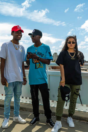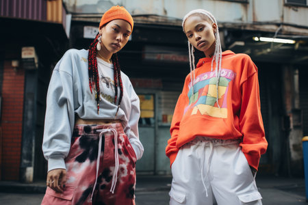Modern streetwear fashion girls. Casual sport. Generate Ai