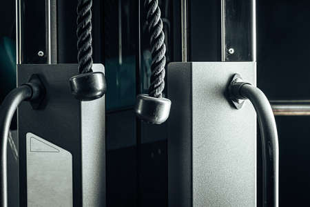 Close up view of a handle of a hand pull machine in a modern fitness center. Gym equipment