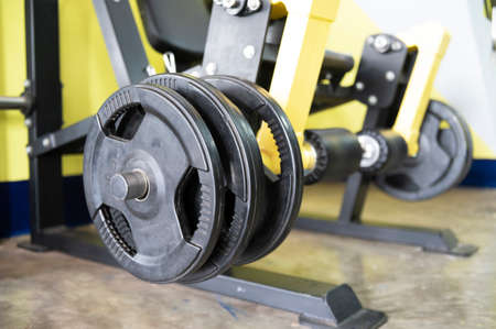 Weight training machine in fitness gym for weight training, bodybuilding and sports strength training.