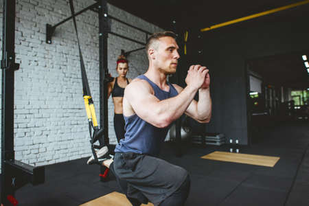 Young sporty couple workout in gym