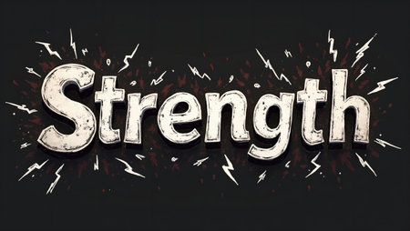 Bold Strength word with lightning bolts for emphasis