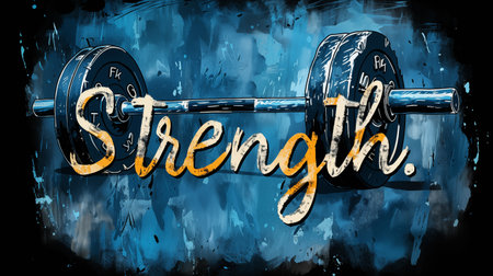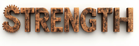 Bold Typography Features the Word Strength With a Muscular Texture Overlay, Emphasizing Power and Determination in a Gritty Setting