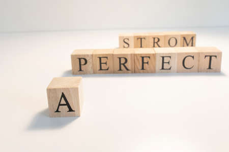For bad and negative events, A perfect storm, statement. It was taken from wooden cubes in a white background.