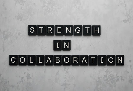 This image showcases the phrase Strength in Collaboration using letter tiles against a concrete background, symbolizing the essence of effective teamwork and collective success.