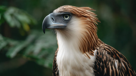 A stunning close-up portrait of a majestic eagle featuring detailed feathers and captivating eyes, showcasing the beauty of wildlife in its natural habitat. Ideal for nature lovers.