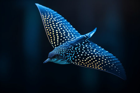 Exotic Spotted Bird in Flight Amidst Pointillist Dots