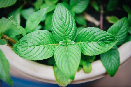 Mint leaves growing in the vegetable garden plant for herbs and food