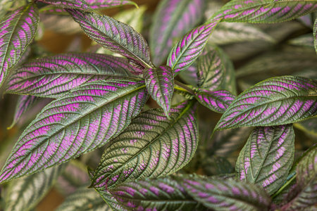 Beautiful top view of Strobilanthes auriculatus dyeriana Persian shield tropical flower.